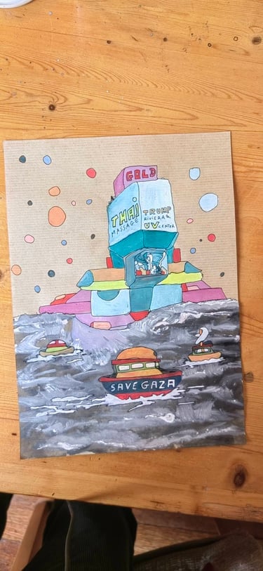 Critique sociale : L'ironie est son scalpel. Le bâtiment imaginaire "Thai Massage / Trump Riviera" devient le symbole d'une décadence consumériste, juxtaposant le luxe obscène et le tourisme de masse sur fond de crise mondiale.